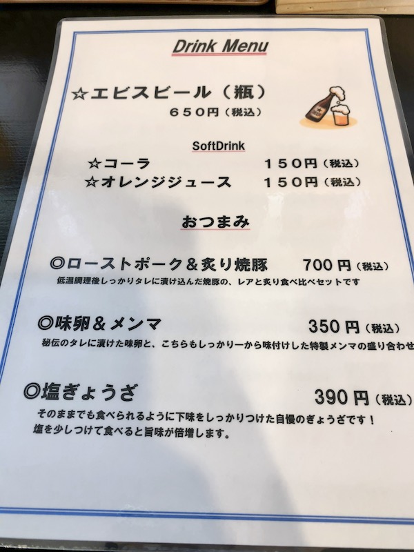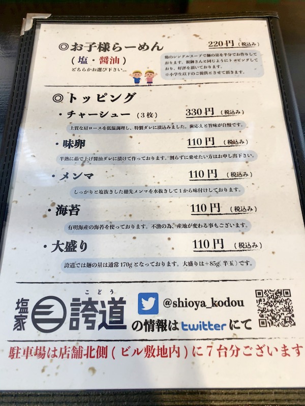 今回は誇道らーめんの塩とサイドは