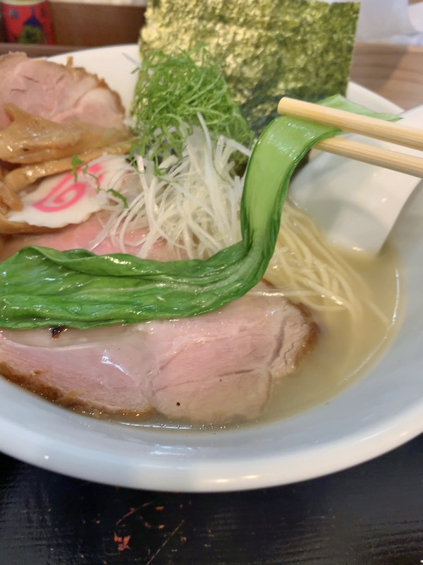 具材はレアチャーシュー、小松菜、